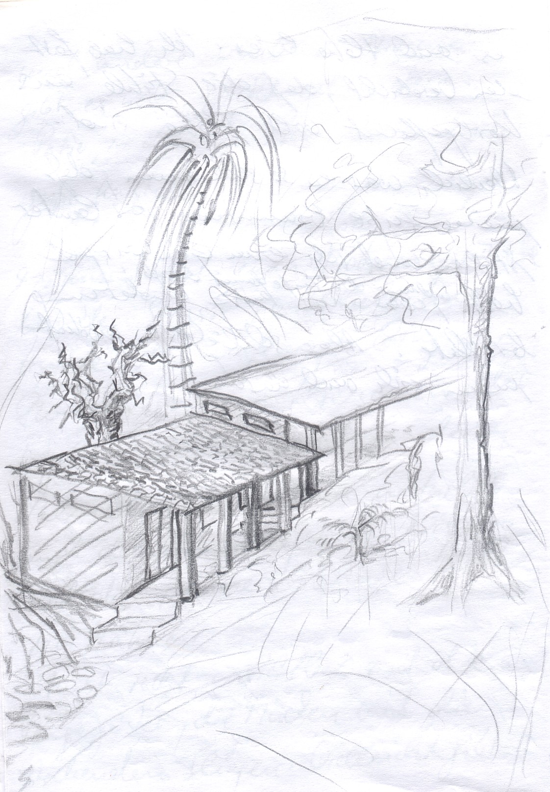 Micha's an artist. On our second visit in May 2003 after the topographical chart of the property was complete, Micha made sketches of how the school buildings might look.